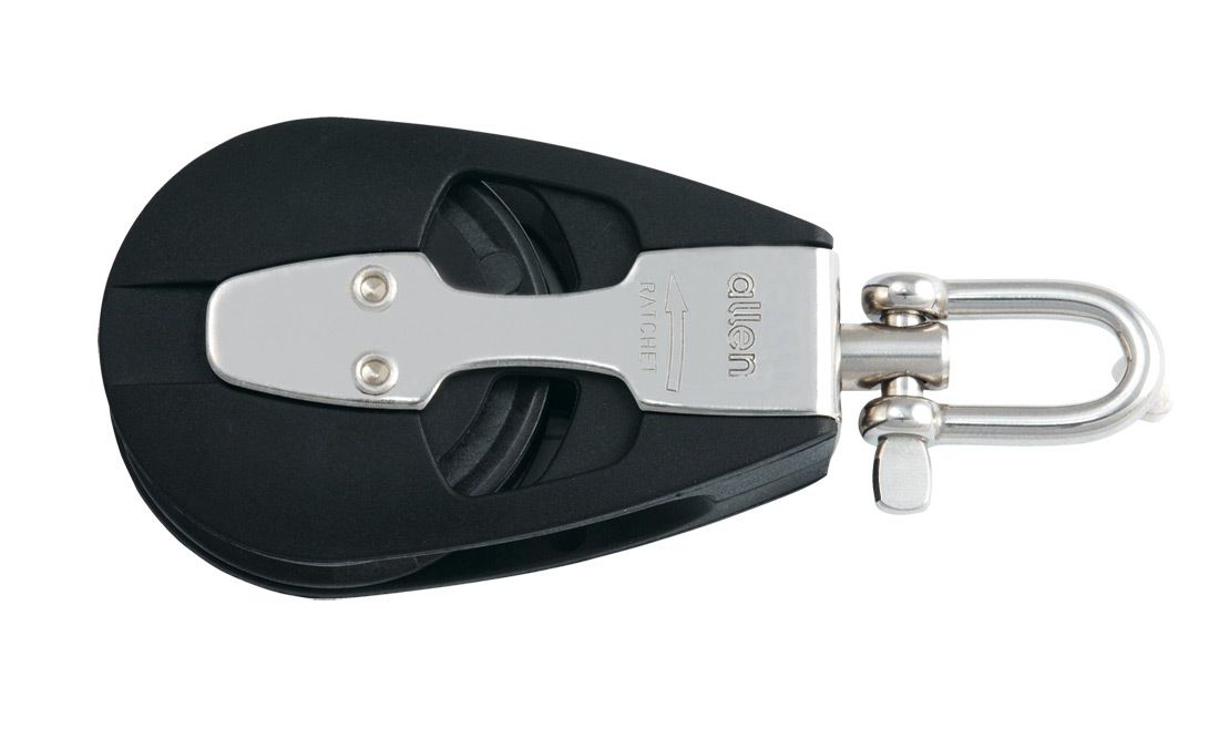 Одношкивный однообушковый блок с трещеткой от известного британского производителя Allen Brothers. Модель A2240 относится к серии A20 и предназначена для профессионального использования в парусном оснащении.