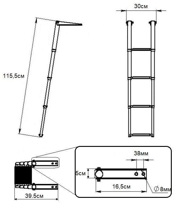 Складной телескопический трап Мореман на 4 ступени