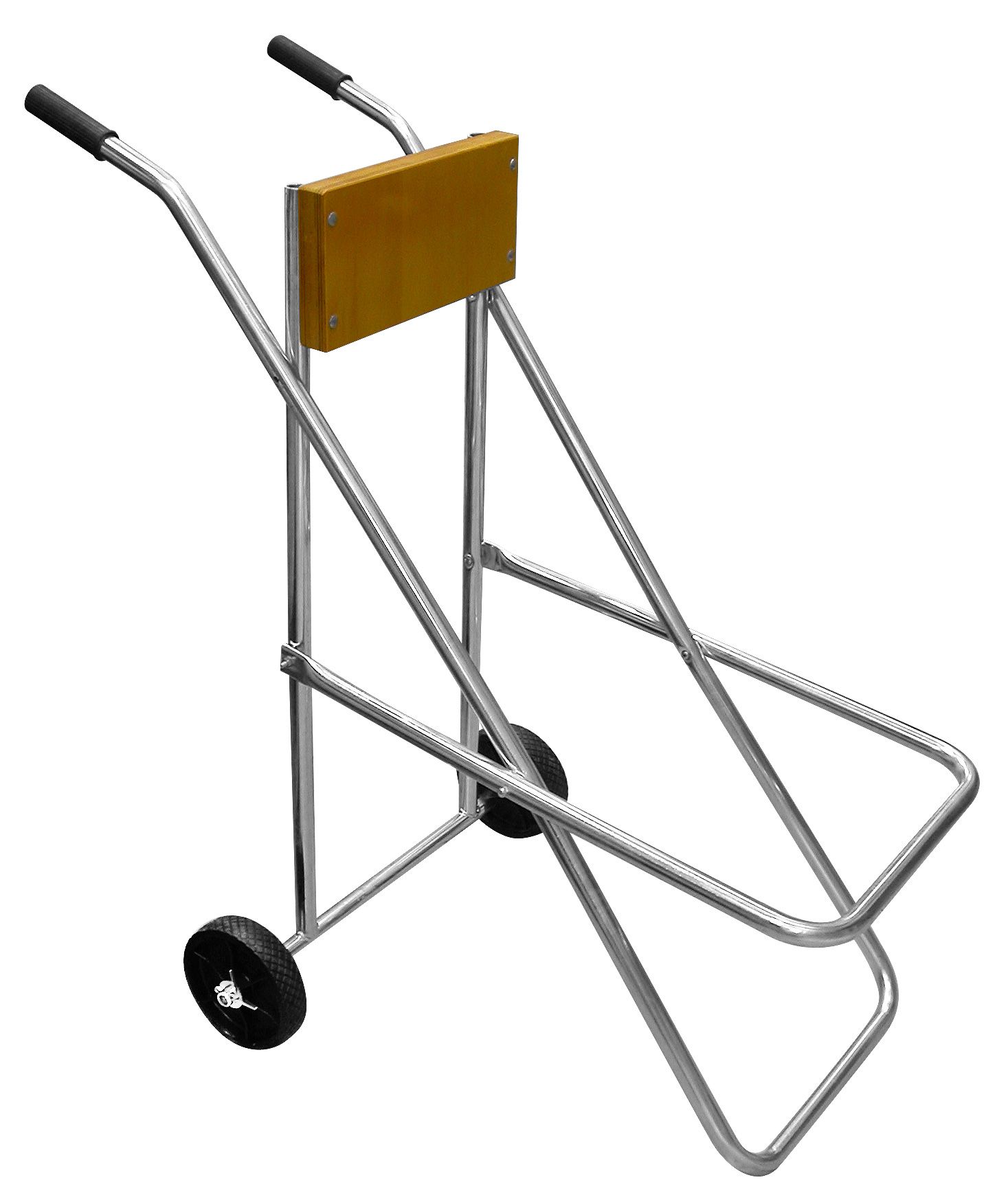Колеса для ровных поверхностей: Небольшие, но прочные пластиковые колеса установлены на задней оси стойки. Они рассчитаны на перемещение по бетону, плитке или асфальту. Чтобы перекатить мотор, достаточно слегка наклонить тележку на себя, перенеся вес на колеса, и она поедет без лишних усилий.