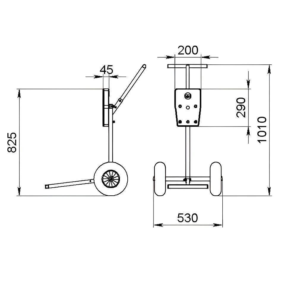 Вездеходность: Большие пневматические колеса диаметром 254 мм (PR1018) на подшипниках обеспечивают мягкий ход. Вы легко преодолеете песчаный пляж или лесную дорогу с корнями, не перегружая спину и не тряся мотор.