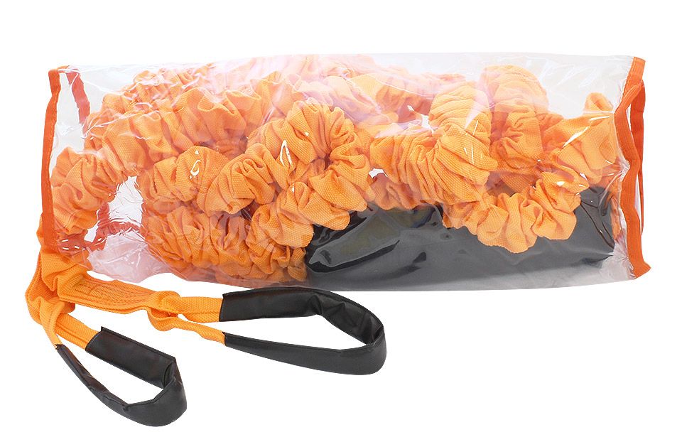 Эластичный буксировочный фал предназначен для безопасной буксировки водных ватрушек и аттракционов, снижает рывки и повышает комфорт катания для пассажиров и пилота лодки. Благодаря упругости и прочным петлям соединение выполняется быстро и надежно.