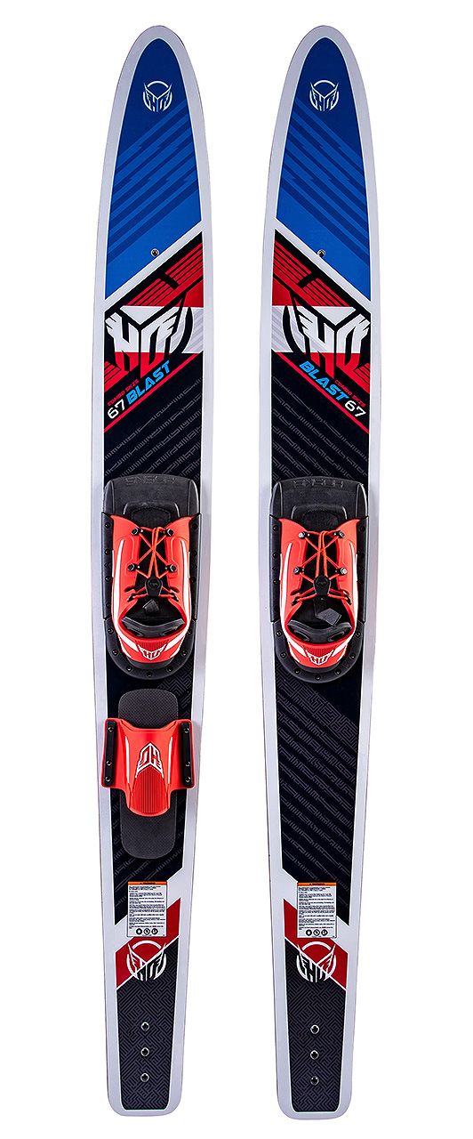 Универсальные парные лыжи для всей семьи. Широкий профиль для облегчения старта из воды, V-образная форма нижней поверхности для стабильного скольжения. Универсальные крепления Blaze из комфортного этилвинилацетета могут быть отрегулированы в очень широком диапазоне, что позволяет подогнать лыжи практически под любой размер ноги. Одна из лыж в паре имеет дополнительное крепление - так называемую заднюю петлю. Используя ее, можно использовать одну из лыж как монолыжу и опробовать свои силы в воднолыжном слаломе, получив еще больше эмоций от активного катания и маневрирования. Модель длиной 63 дюйма подойдет для райдеров весом от 32 до 68 кг: модель 67 дюймов подойдет всем, кто весит 64 кг и более.