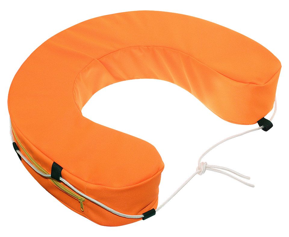 Удобство надевания: U-образная форма позволяет человеку в воде легко «войти» в круг, не поднимая рук и не ныряя, что особенно важно, если пострадавший паникует или обессилен.