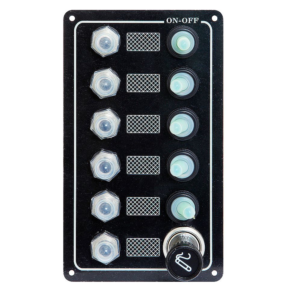 Эта панель — настоящий бестселлер для владельцев средних моторных лодок и катеров. Она объединяет в себе функции управления пятью электрическими контурами и точку доступа к бортовому питанию через встроенное гнездо прикуривателя. Главная "фишка" модели — использование автоматических термобиметаллических предохранителей (Circuit Breakers) вместо устаревших плавких вставок, что выводит надежность бортовой сети на новый уровень.