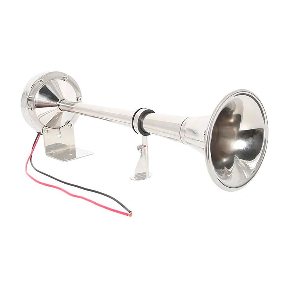 Одинарный электро-механический горн из полированной нержавеющей стали — это выбор капитанов, которые ценят не только функциональность, но и внешний вид оборудования. Данная модель обеспечивает внушительную громкость в 115 Дб, что гарантирует отличную слышимость сигнала другим судам даже при работающем двигателе или сильном ветре. Длинный рожок (390 мм) формирует чистый и направленный звук, необходимый для соблюдения правил безопасности на воде.