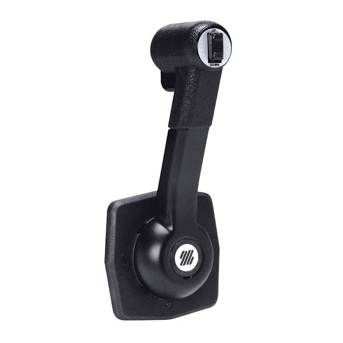 Контроллер выполнен в коррозионностойком исполнении. Основной рычаг позволяет плавно регулировать газ и осуществлять переключение на реверс одним движением. В конструкцию интегрирована отдельная кнопка для дистанционного управления тримом (углом откидки) мотора, что избавляет от необходимости тянуться к самому двигателю.