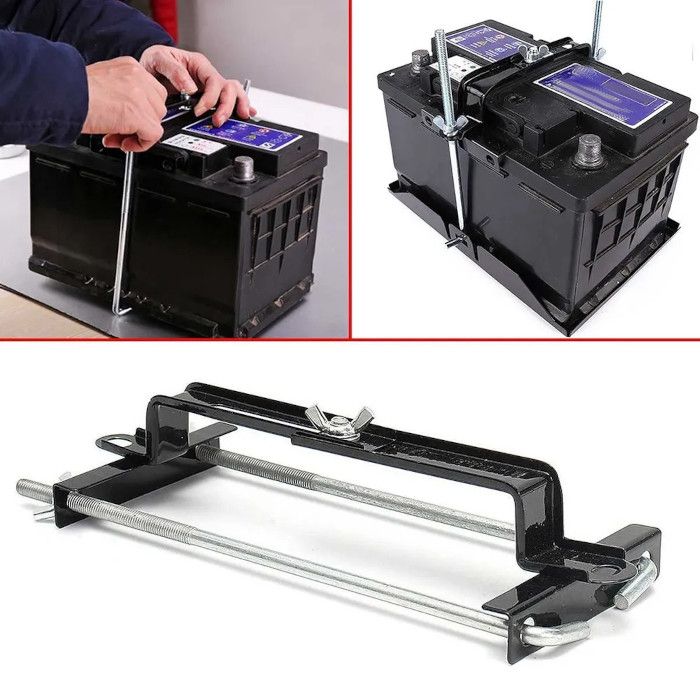 Благодаря удлиненным шпилькам и прочной стальной конструкции, данная модель позволяет надежно закрепить аккумуляторы нестандартной высоты, при этом сохраняя универсальность регулировки по ширине для батарей различных производителей.