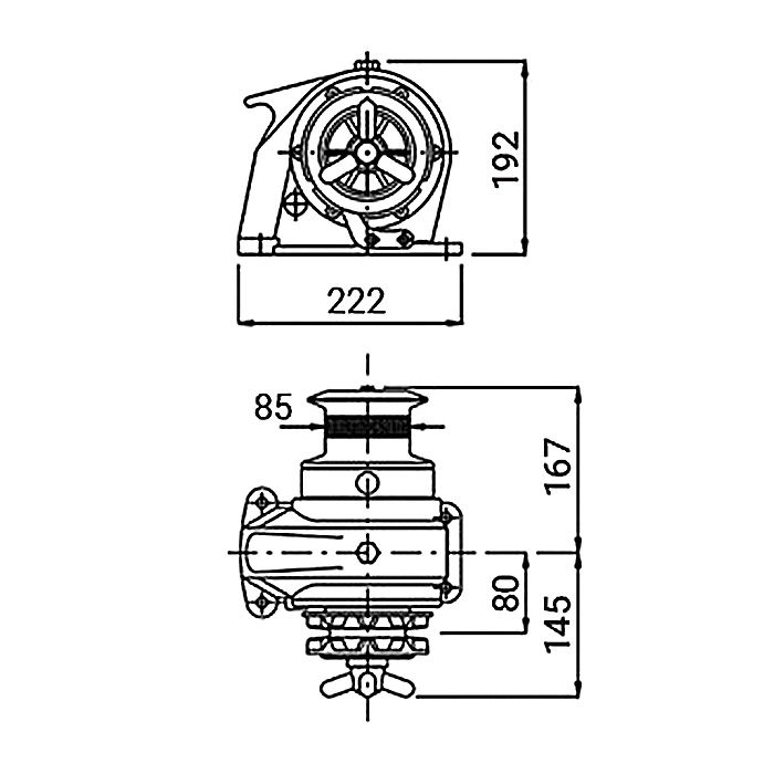 Ручная якорная лебедка Royal с горизонтальной осью (брашпиль), используется для травления, выбирания и удержания якорной цепи.