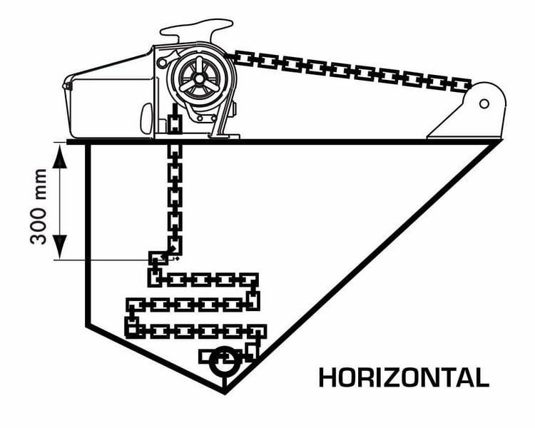 Может использоваться с цепью и швартовным тросом(на турачке).